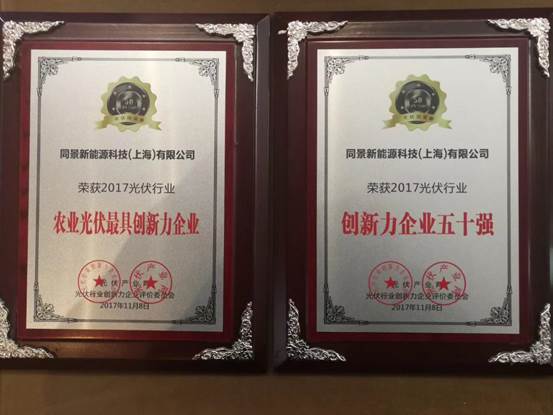 大會當(dāng)晚還舉行了盛大的頒獎典禮,「PV TOP 50」用專業(yè)、權(quán)威的價值視野,倡導(dǎo)創(chuàng)新進取,尋找本年度的“最具創(chuàng)新”標(biāo)桿企業(yè)。同景新能源通過不斷技術(shù)創(chuàng)新,先后申請自主專利70余項,獲授權(quán)50余項,國際專利3項。依托自主專利技術(shù),同景新能源竣工及在建光伏電站已超1.5GWp,跟蹤支架應(yīng)用量居************。同景新能源一直專注于太陽能發(fā)電和光熱綜合利用,依托自主專利技術(shù)廣泛采用“上部光伏發(fā)電、下部農(nóng)業(yè)種植”相結(jié)合的農(nóng)光互補光伏“生態(tài)一體化”開發(fā)模式,成功打造了多個智能光伏生態(tài)綜合體項目,真正實現(xiàn)了農(nóng)光互補,在太陽能領(lǐng)域一支獨秀。在此次評選中同景新能源憑借以上自身優(yōu)勢在經(jīng)過申報——初審及公示——網(wǎng)上投票等環(huán)節(jié)與近200家光伏企業(yè)經(jīng)過為期4個月的激烈角逐,最終斬獲了“2017光伏行業(yè)創(chuàng)新力企業(yè)五十強”及“2017農(nóng)業(yè)光伏最具創(chuàng)新力企業(yè)”兩項殊榮,載譽而歸。
