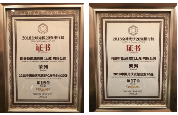 同景新能源入選“2018全球光伏20強(qiáng)排行”兩大榜單